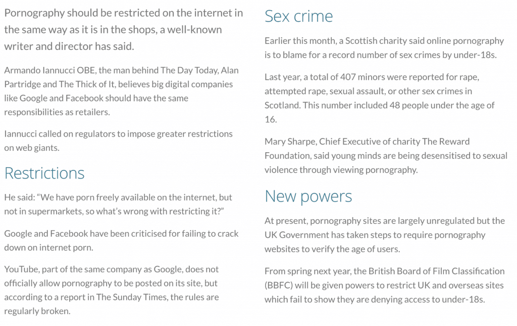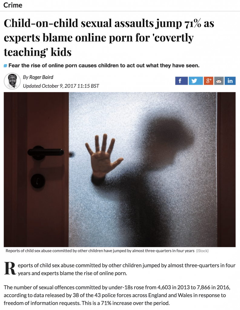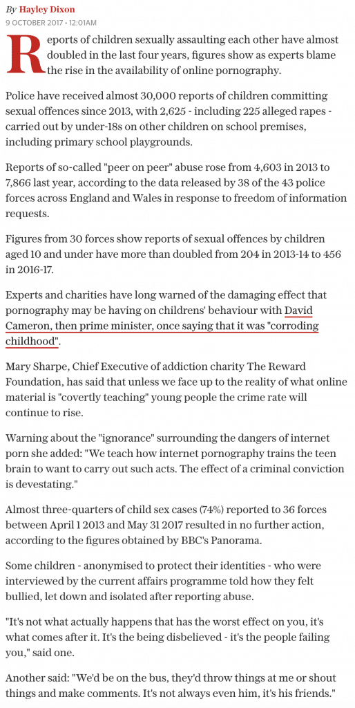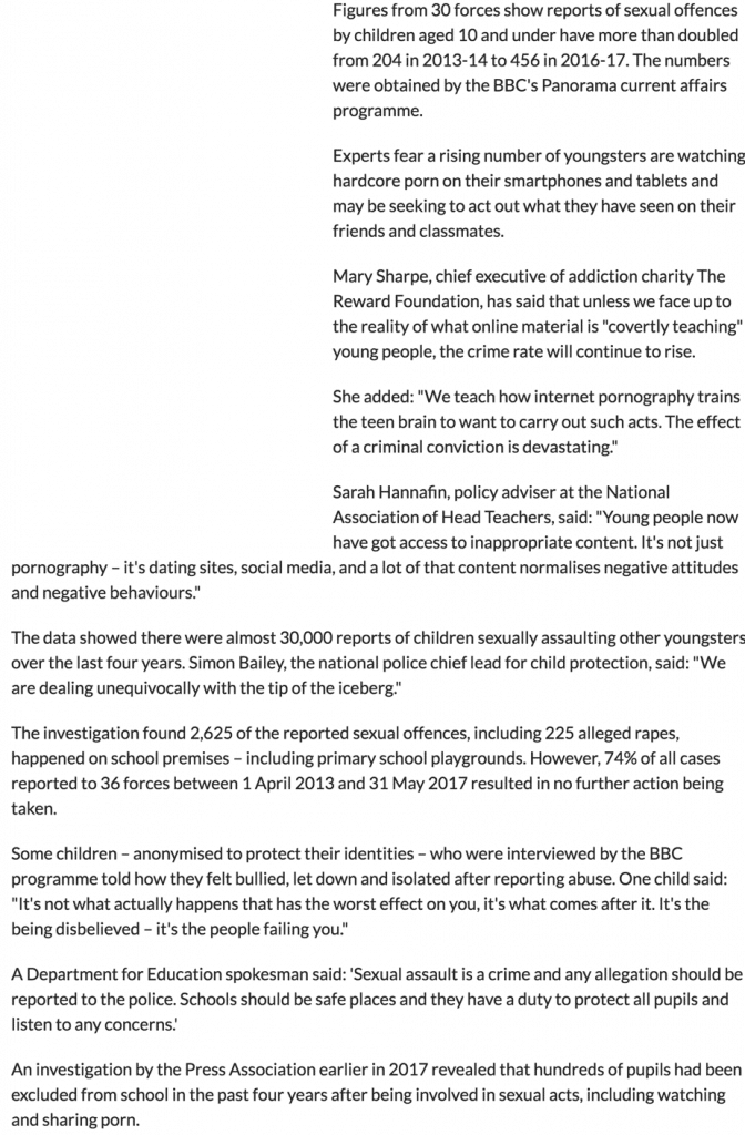 The Herald, 4 September 2017, Page 12. It is available online here. It was reworked as Internet porn blamed for the rise in under-18s sex crimes on Aadhu.com on the same day. A German language version appeared on the Austrian website ‘futurezone technology news’ as Schottland gibt Online-Pornos Schuld an Sex-Verbrechen.